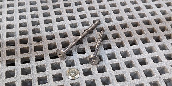 MDS Marine has developed a custom screw for fastening Minimesh and Micromesh fiberglass deck surfaces. These are a flat head 14 gauge, type 17 screw. They have a 5mm socked head drive similar to a bugle head. They are available in a 70mm and 100mm length and manufactured from 316 stainless steel.